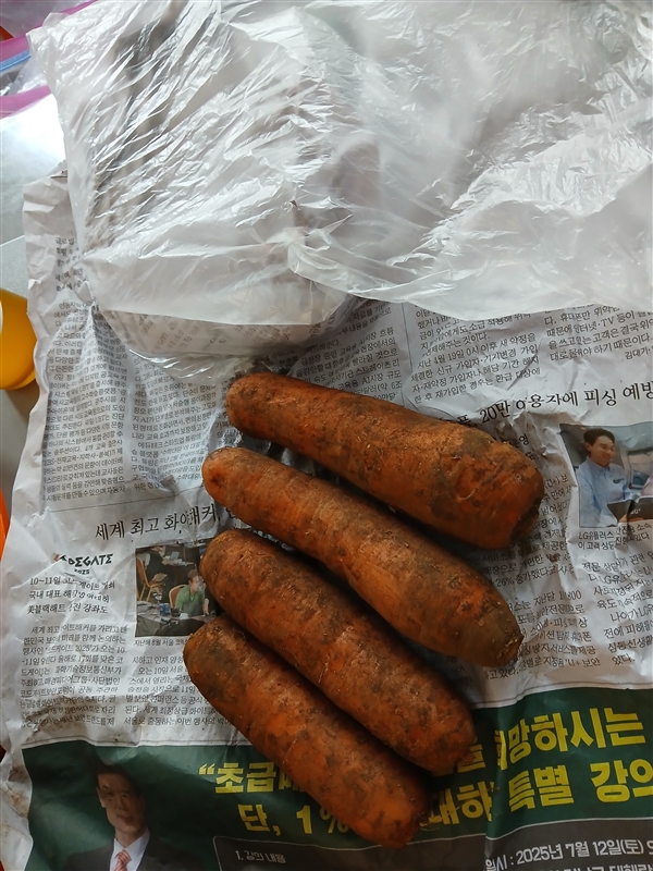 여기 당근 맛있읍니다 달달 합니다저는 이렇게 신문지에 싸서 소분해서야채실 넣고 몽땅쥬스만들때 씁니다