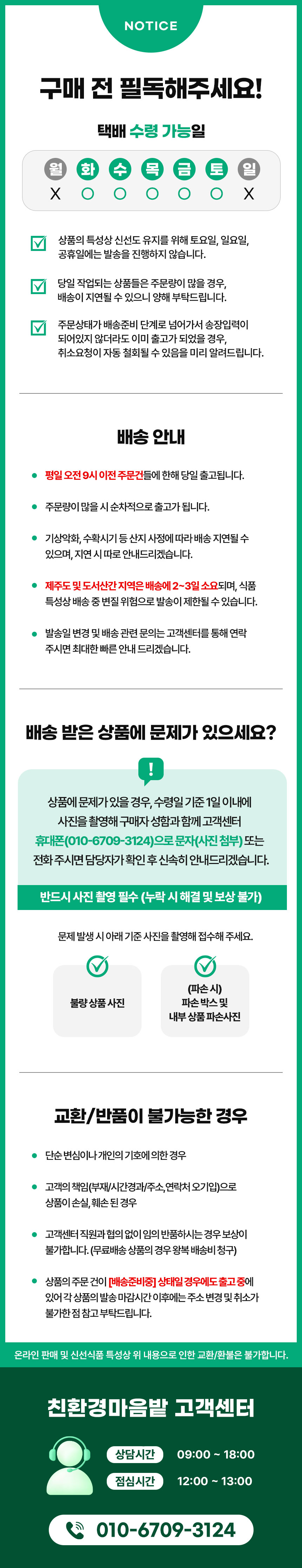 · 배송은 입금확인된 날짜로부터 1~3일 소요되며 최대 7일 이내 제공됩니다. ( 공휴일, 기상악화 등 불가피한 상황에 따라 추가 지연될 수 있습니다.)