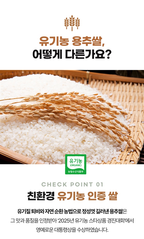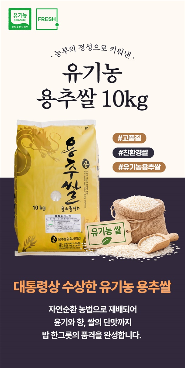 국내산 친환경 유기농 용추쌀 10kg 백미 햅쌀